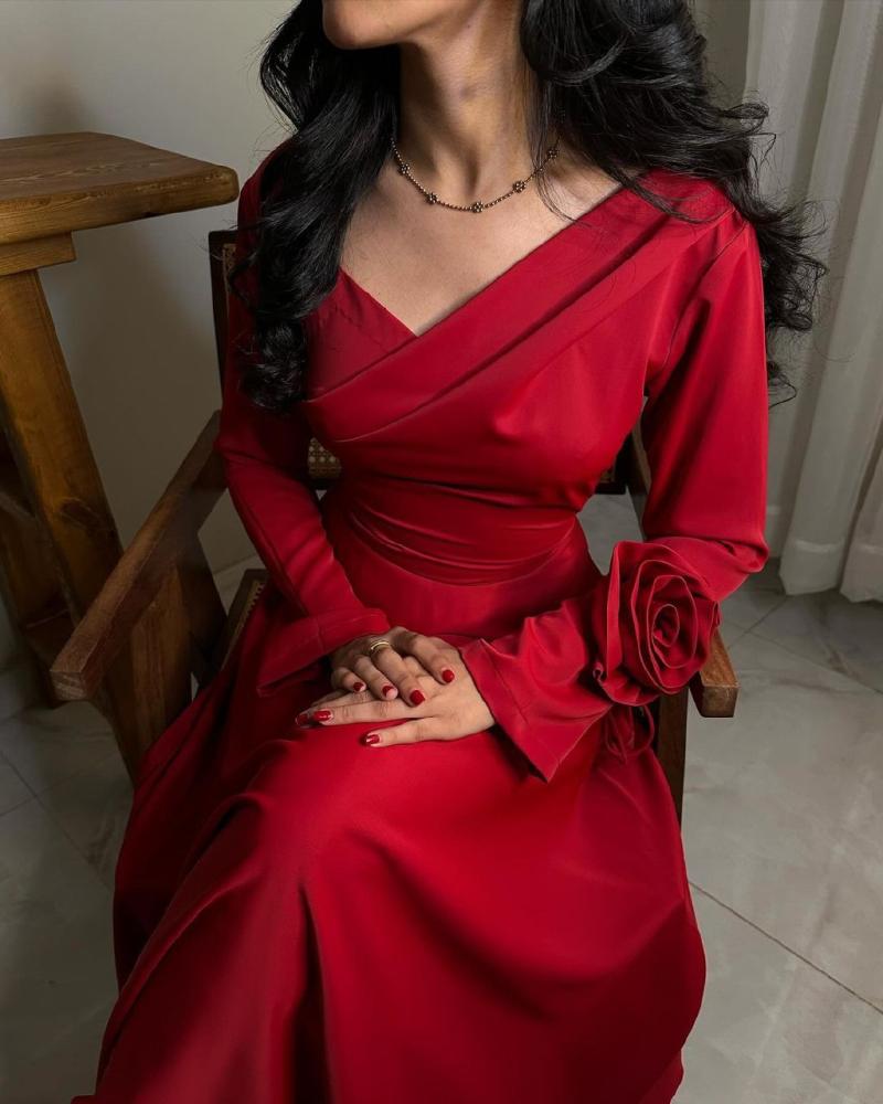فستان سهره احمر انيق خامه تفته مطفي
